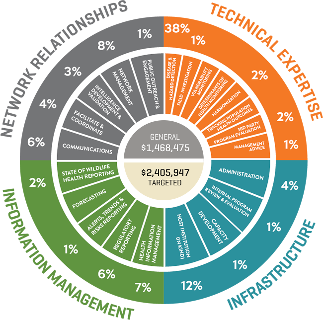 We are in a constant struggle to protect wildlife from the myriad of threats they face ranging from pollution, to climate change, to infectious diseases. We are equally challenged to protect the social values wildlife bring us and to be prepared for new and emerging infectious threats that harm our health, agriculture, and food safety. These challenges are too many and too frequent. In an era of static and declining resources, the CWHC must make strategic decisions on how best to deploy our resources and expertise to make us more effective agents of change. Finding the species, situations and locations where our surveillance, research and action can most effectively influence health outcomes is at the heart of our evolution from a surveillance organization to a wildlife health intelligence network.