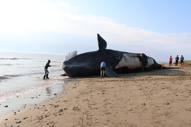 In the summer and fall of 2017, the CWHC investigated an unprecedented mortality event in NARW in the Gulf of St. Lawrence where 12 carcasses were identified floating or beached, and 5 live whales were observed entangled in fishing gear between the months of June to September. Seven carcasses (except one which beached itself naturally on the on the Magdalen Islands [Îles-de-la-Madeleine])) were towed ashore by the Department of Fisheries and Oceans (DFO) for complete necropsies conducted by a team of staff and volunteers (from DFO and the Marine Animal Response Society [MARS]) led by CWHC veterinarians from the Atlantic and Québec nodes. As well, internationally recognized whale experts William McLellan and Dr. Stephen Raverty (CWHC BC) attended the first three NARW necropsies.