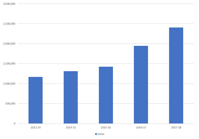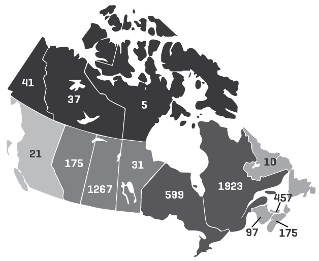 Fig 1: Number of trauma incidents, by province, submitted to the CWHC over a 5-year period (2013-2017)