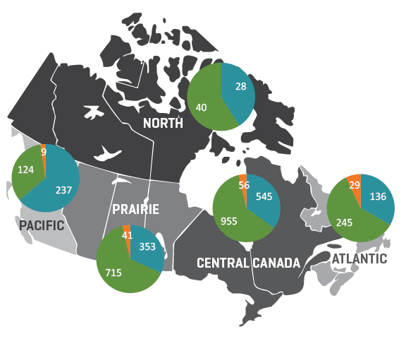 Assessment: The CWHC continues to maintain a stable number of cases from all of our regional centres, reflecting a diversity of species and ecosystems. Like many wildlife health programs, there is a bias towards birds and mammals and an underrepresentation of marine and aquatic species. Our samples remined biased to southern Canada and cluster near our regional centres, reflecting the need to continue to innovate in ways of finding wildlife health signals from beyond our usual catchment areas. However, the existing surveillance system continues to show its power to detect new diseases, identify changes in the species and spatial distribution of known diseases and support trend analysis for diseases of special concern. Our quarterly reports, social media and technical reports are meeting communication needs of many partners surveyed in 2018.